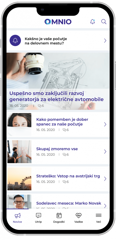 Komunikacijska platforma OMNIO z mobilno rešitvijo za komunikacijo, zadovoljstvo zaposlenih in pametno upravljanje procesov.